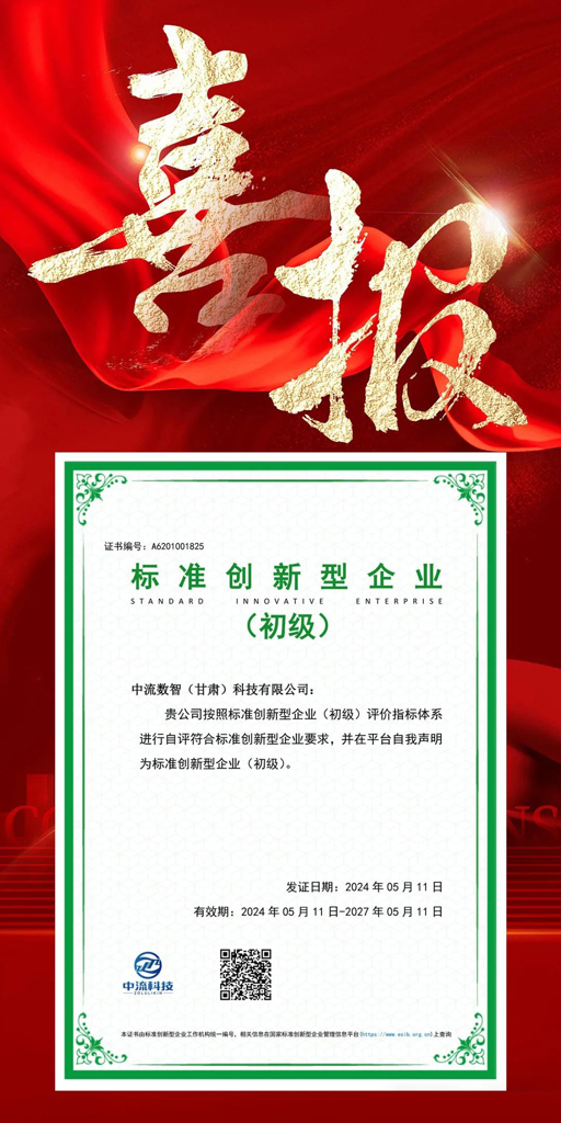 中流科技西北区域首批获评“标准创新型企业”称号