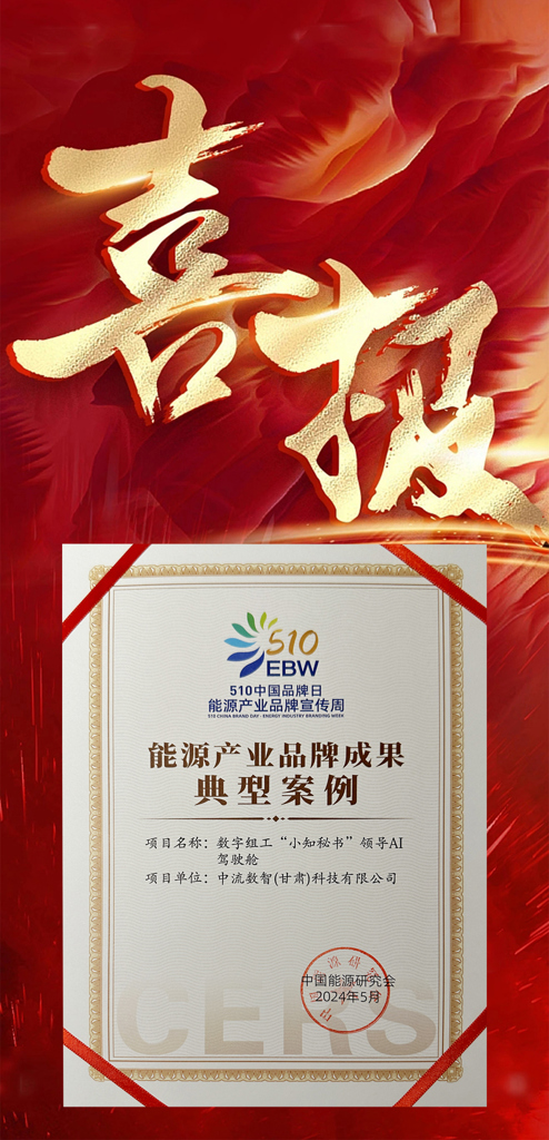 中流科技“数字组工'小知秘书'领导AI驾驶舱”斩获“2024能源产业品牌成果典型案例100”服务品牌荣誉